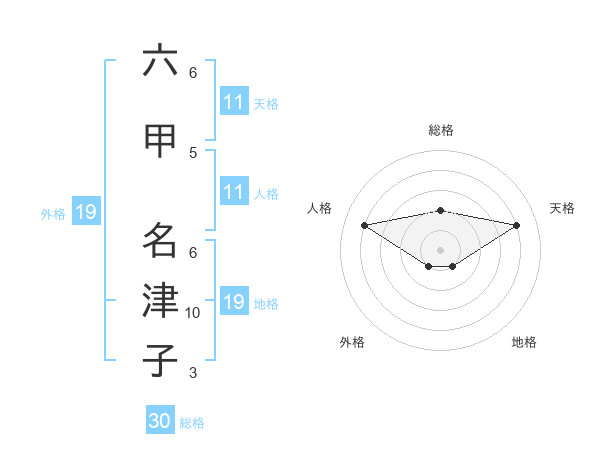 六甲 名津子さんの総格は30画の2点!
