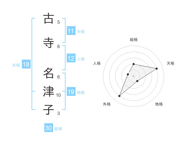 古寺 名津子さんの総格は30画の2点!