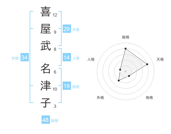 喜屋武 名津子さんを姓名の画数から五運を鑑定