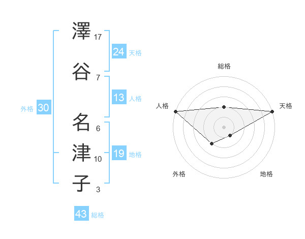 澤谷 名津子さんを姓名の画数から五運を鑑定