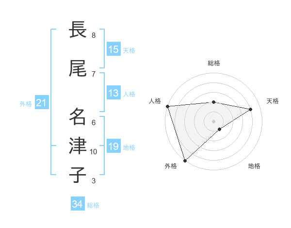 長尾 名津子さんを姓名の画数から五運を鑑定