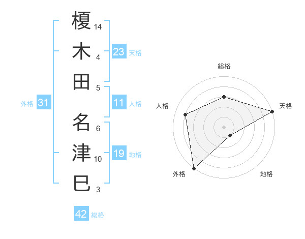 榎木田 名津巳さんの外格は31画の5点!