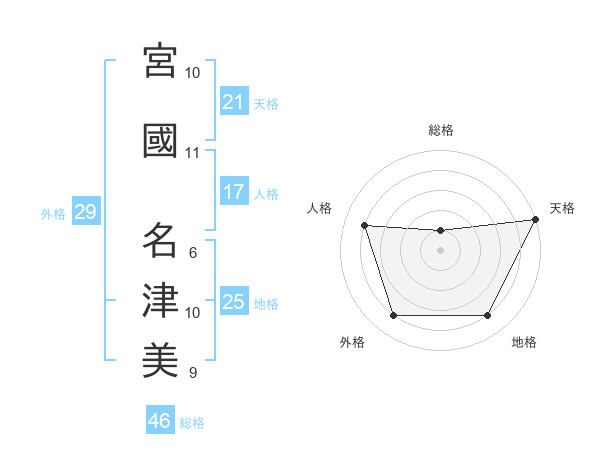 宮國 名津美さんを姓名の画数から五運を鑑定