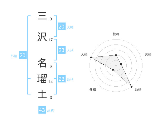 三沢 名瑠土さんの地格は23画の5点!