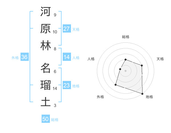 河原林 名瑠土さんを姓名の画数から五運を鑑定