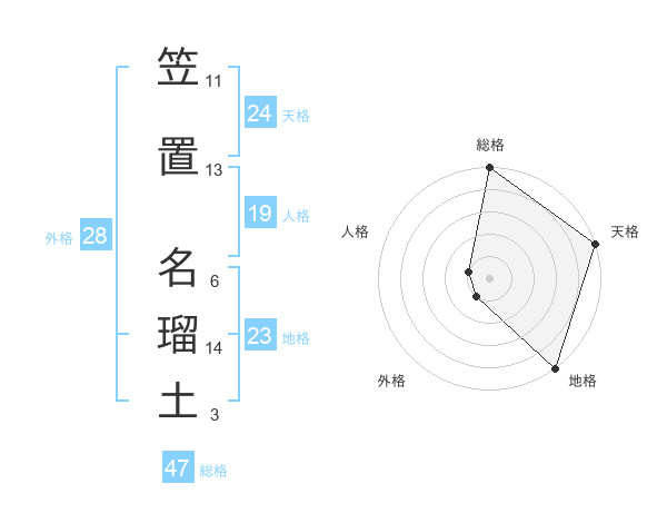 笠置 名瑠土さんの総格は47画の5点!