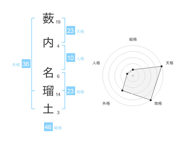 薮内 名瑠土さんを姓名の画数から五運を鑑定