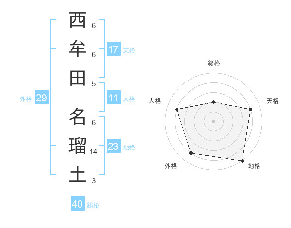 西牟田 名瑠土さんを姓名の画数から五運を鑑定
