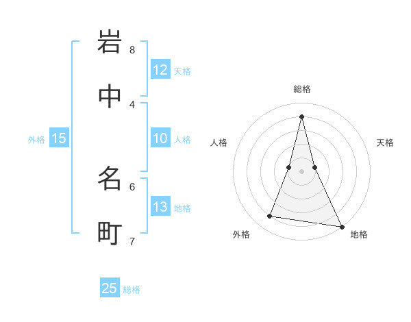岩中 名町さんの総格は25画の4点!