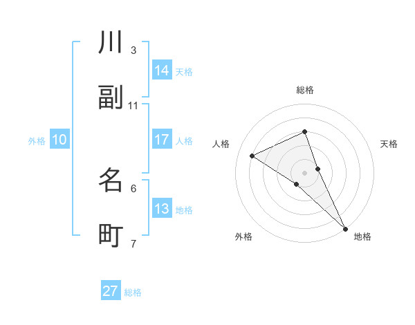 川副 名町さんの総格は27画の3点!