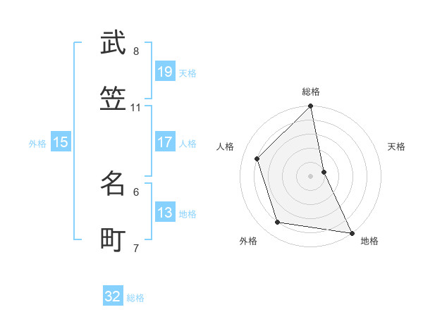 武笠 名町さんの総格は32画の5点!