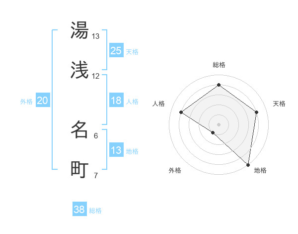 湯浅 名町さんの総格は38画の4点!