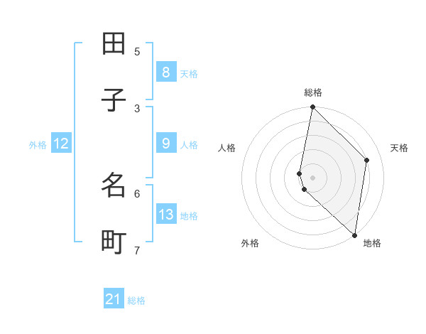 田子 名町さんの総格は21画の5点!