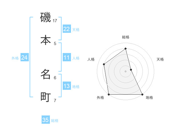 磯本 名町さんの外格は24画の5点!