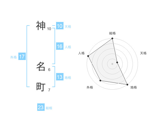 神 名町さんの地格は13画の5点!