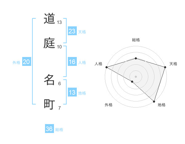 道庭 名町さんの地格は13画の5点!