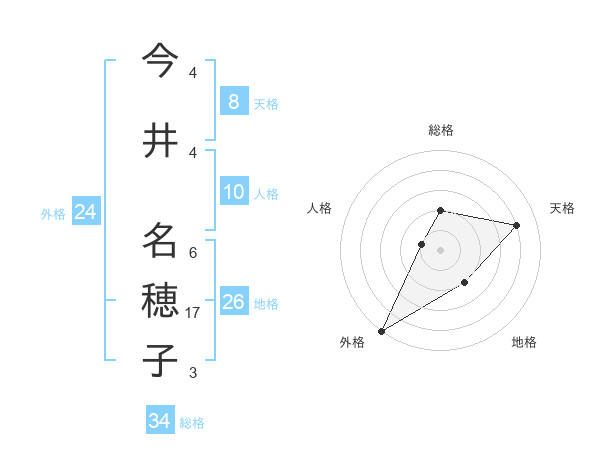 今井 名穂子さんの天格は8画の4点!