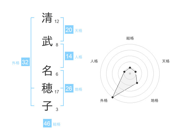 清武 名穂子さんを姓名の画数から五運を鑑定