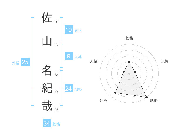 佐山 名紀哉さんの総格は34画の2点!