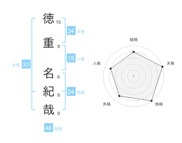 徳重 名紀哉さんの天格は24画の5点!