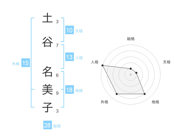 土谷 名美子さんを姓名の画数から五運を鑑定