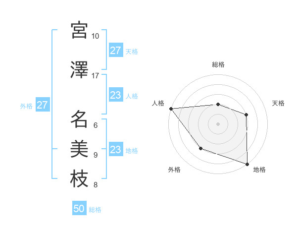 宮澤 名美枝さんを姓名の画数から五運を鑑定