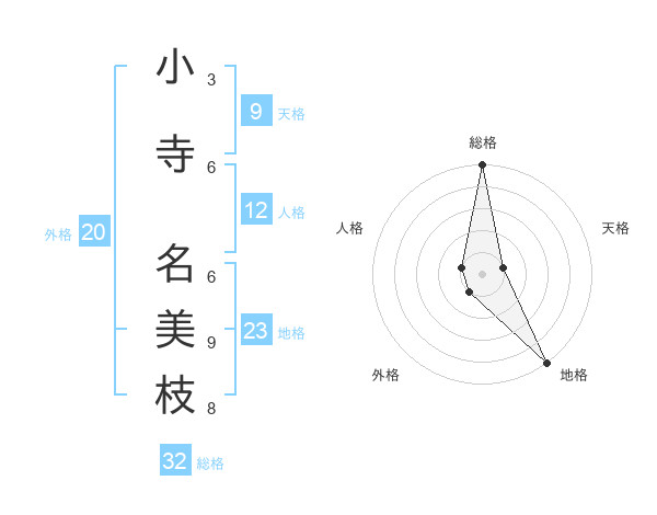 小寺 名美枝さんを姓名の画数から五運を鑑定