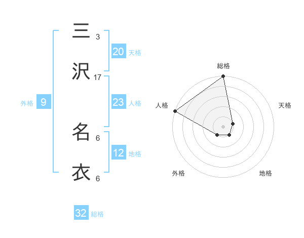 三沢 名衣さんの天格は20画の1点!