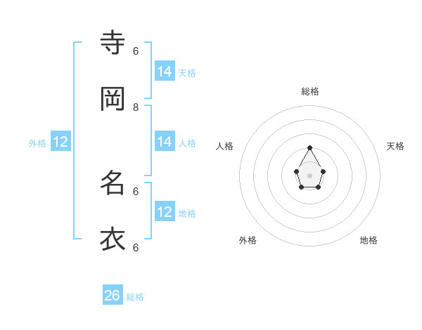 寺岡 名衣さんの総格は26画の2点!