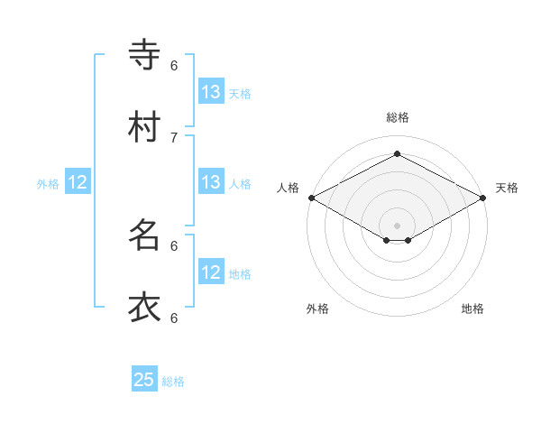 寺村 名衣さんの天格は13画の5点!