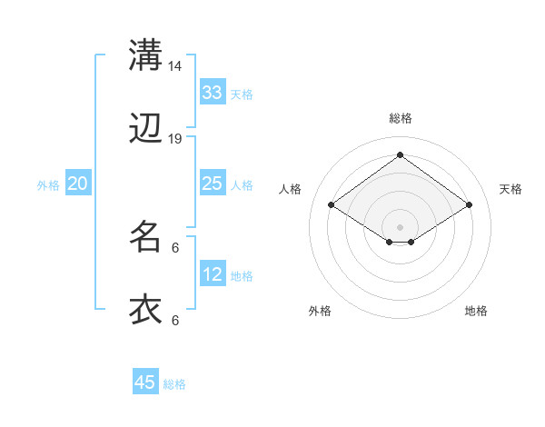 溝辺 名衣さんを姓名の画数から五運を鑑定