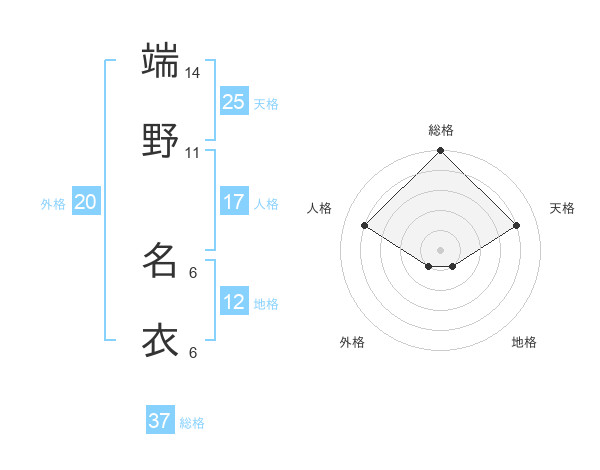 端野 名衣さんの総格は37画の5点!