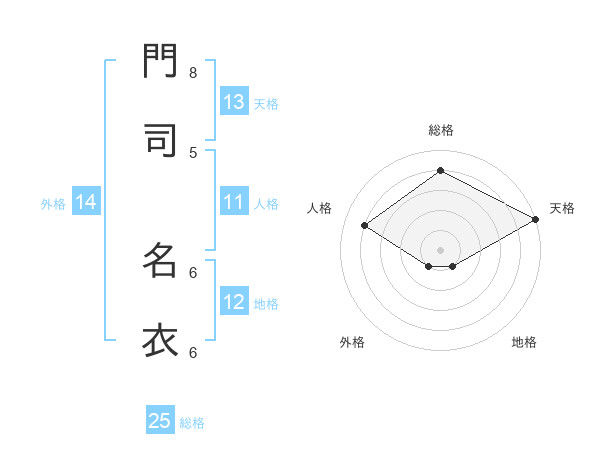 門司 名衣さんの総格は25画の4点!