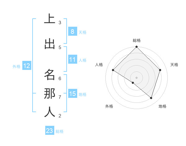 上出 名那人さんの地格は15画の4点!