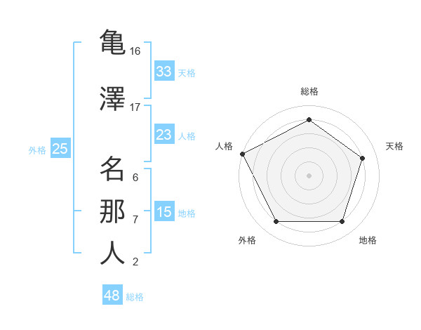 亀澤 名那人さんの外格は25画の4点!