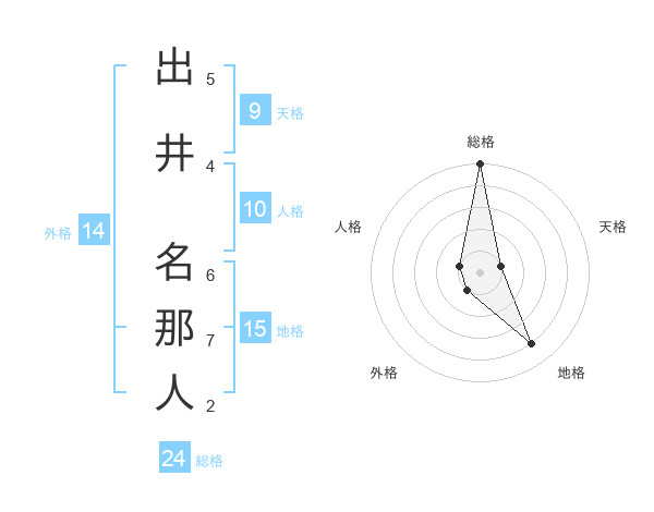 出井 名那人さんの総格は24画の5点!