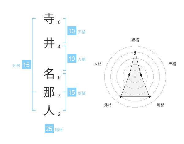 寺井 名那人さんを姓名の画数から五運を鑑定