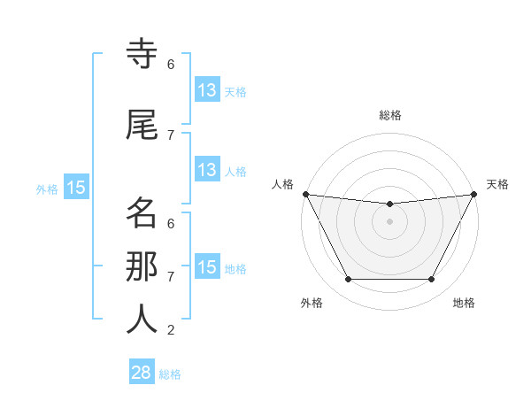 寺尾 名那人さんの天格は13画の5点!