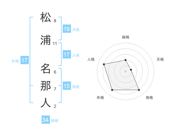 松浦 名那人さんを姓名の画数から五運を鑑定