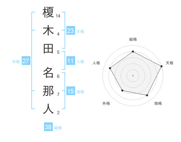 榎木田 名那人さんを姓名の画数から五運を鑑定