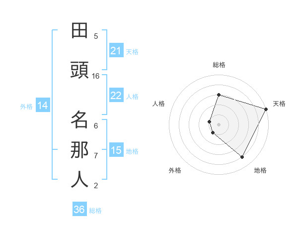 田頭 名那人さんの天格は21画の5点!