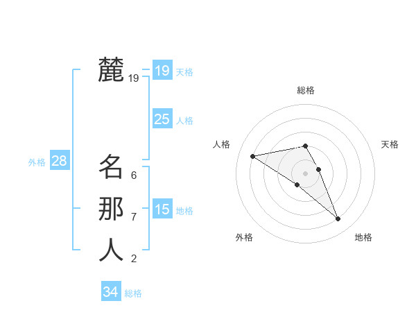 麓 名那人さんの天格は19画の1点!