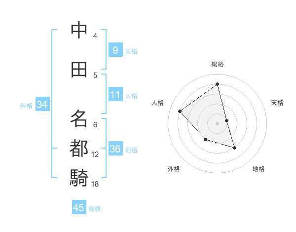 中田 名都騎さんを姓名の画数から五運を鑑定