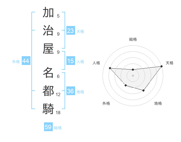 加治屋 名都騎さんを姓名の画数から五運を鑑定