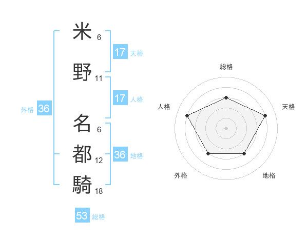 米野 名都騎さんを姓名の画数から五運を鑑定