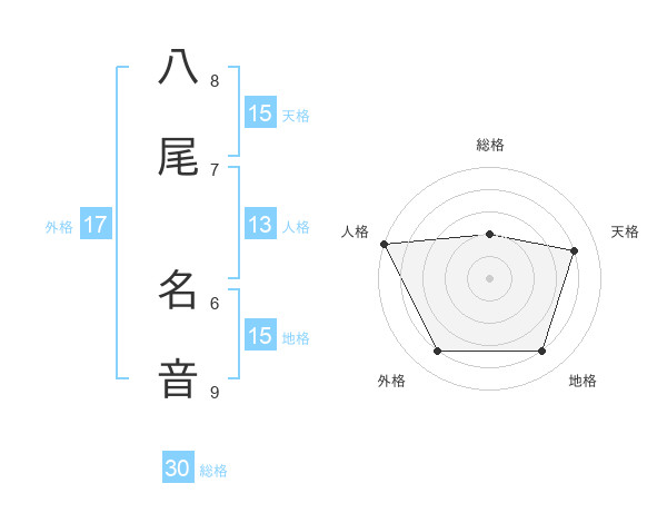 八尾 名音さんの総格は30画の2点!