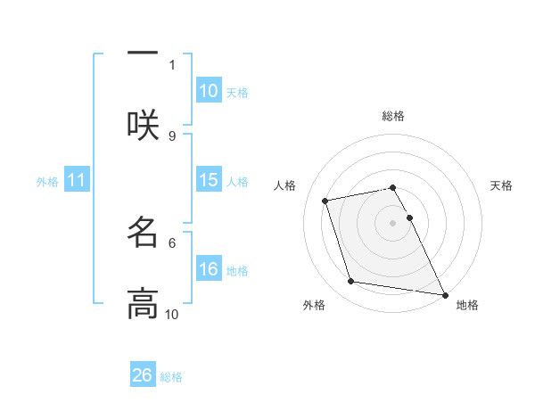 一咲 名高さんの総格は26画の2点!