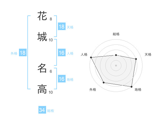 花城 名高さんの天格は18画の4点!