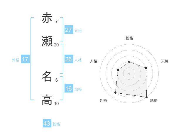 赤瀬 名高さんを姓名の画数から五運を鑑定