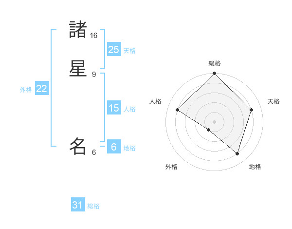 諸星 名さんの天格は25画の4点!